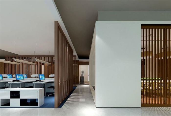 簡(jiǎn)約中式辦公室設(shè)計(jì)主要包括導(dǎo)入?yún)^(qū)域、公共區(qū)域、通行區(qū)域、工作區(qū)域,每一個(gè)功能區(qū)域展現(xiàn)企業(yè)特色的元素并塑造企業(yè)良好的形象。無論是對(duì)內(nèi)宣導(dǎo)還是對(duì)外展示,簡(jiǎn)約中式辦公室設(shè)計(jì)集時(shí)尚氣息和古色古香于一體,給人留下深刻的印象,讓人們?cè)跐撘颇懈惺芄惊?dú)樹一幟的人文氣息。為充分體現(xiàn)行業(yè)特性,設(shè)計(jì)師在設(shè)計(jì)簡(jiǎn)約中式辦公空間時(shí),將“生態(tài)+綠色”的設(shè)計(jì)理念貫徹到辦公環(huán)境中,同時(shí)將新中式元素巧妙融合到辦公室設(shè)計(jì)里,比如“水墨”、“祥云”,使得辦公空間盡顯別樣的古典韻味。