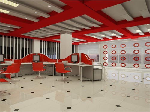 1、時(shí)尚服裝公司辦公室門廳裝修設(shè)計(jì):采用大紅色為主色調(diào)凸顯了服裝設(shè)計(jì)公司的一種很奔放的一種美感。前臺(tái)和休息區(qū)是一個(gè)整體的空間,利用展示架把它們成功的分成了兩個(gè)區(qū)域,互相獨(dú)立又協(xié)調(diào)統(tǒng)一。紅色的亞克力燈也是很搶眼具有一種很時(shí)尚現(xiàn)代的美感并且與會(huì)議室互相呼應(yīng)使整個(gè)設(shè)計(jì)做的比較整體。會(huì)議室的窗洞是采用像服裝樣式的異性口開(kāi)洞凸顯了整個(gè)設(shè)計(jì)主題。辦公空間整個(gè)設(shè)計(jì)用簡(jiǎn)約的線條以及時(shí)尚的家具打造一種很熱烈奔放富有激情的公司氛圍。