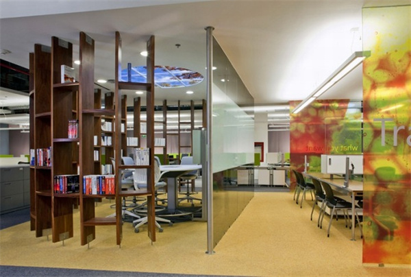 2、某互聯(lián)網(wǎng)公司辦公空間設計:在辦公室的不同區(qū)域里,有幾面用切割過的石材、木材、以及軟墊和玻璃裝飾成的墻壁,這顯得特有個性??傊@是一個對到訪者來說溫暖怡人,對員工來說能夠振奮身心的地方。這樣一個辦公場所既要像家一般舒適,又要滿足工作的實際需要,這的確不太容易。