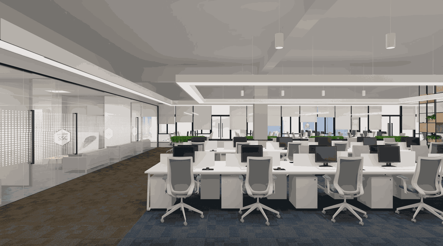 項目名稱:灝軒智能科技上??偛啃罗k公室裝修效果圖案例? 項目地址:金領(lǐng)谷科技園21號樓??面積:2900平