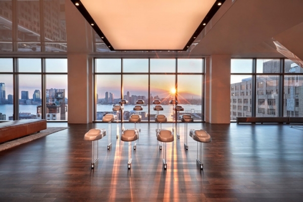 精致皮革裝飾的電梯廳面向開敞明亮的休閑區(qū),高大的落地玻璃窗將遠(yuǎn)處哈得遜河的美景盡收眼底。設(shè)計(jì)取消傳統(tǒng)的接待臺(tái)模式,以簡約的現(xiàn)代禮遇打造個(gè)性化的服務(wù)體驗(yàn)。