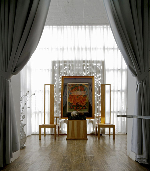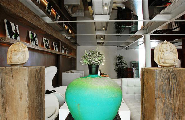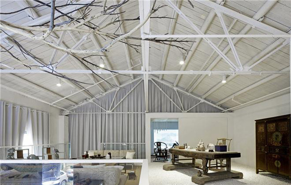 枯樹、鳥籠、白色鵝卵石、明代老家具等這些原生態(tài)的設(shè)計元素,在設(shè)計師筆下挖掘、整合運用,塑造了一個溫文爾雅的環(huán)境,在人性化上一樓兼做了一個可交流的小餐吧。