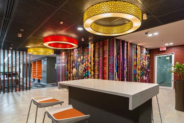 上海辦公室裝修公司-領(lǐng)企裝飾今天與大家分享的是,印度海德拉巴Pegasystems辦公室裝修設(shè)計(jì)。其辦公室裝修設(shè)計(jì)充分體現(xiàn)了熱情洋溢的異域印度風(fēng)情。