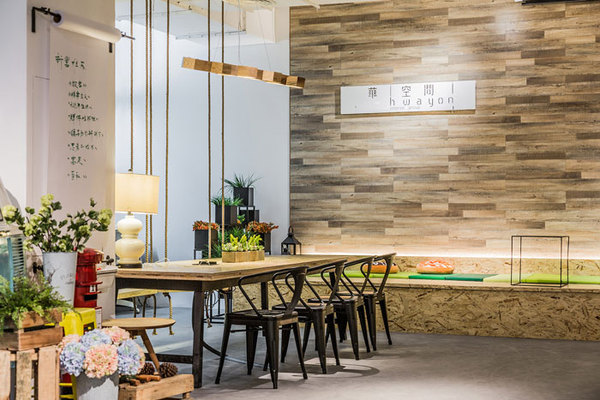 會議室的設計,三塊玻璃隔斷加上彩繪,既有效的隔離出會議空間,又節(jié)約成本,同時與空間相互融合。