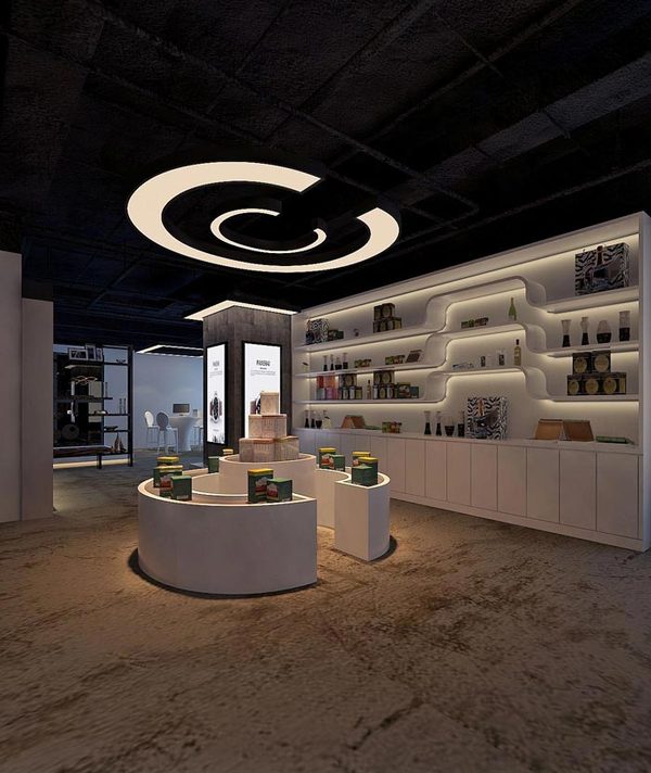 設(shè)計(jì)師通過(guò)位置、布置、燈光等手段突出重點(diǎn)展品,通過(guò)單獨(dú)陳列、利用射燈等手段突出、強(qiáng)調(diào)重點(diǎn)展品。