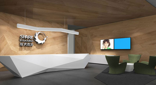 接待區(qū)域的設計,設計師巧妙的利用了定位焦點,以此來凸顯企業(yè)的實力,使的用戶在企業(yè)可以進一步得到認可。