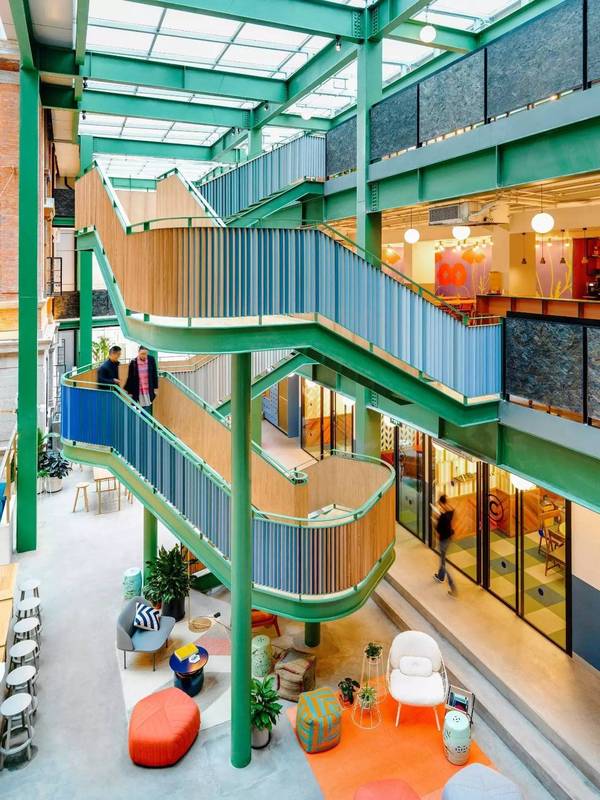 新建的聯(lián)合辦公空間內(nèi)保留了一些舊工廠的元素,設(shè)計師 Miguel Mckelvey 刻意營造出工業(yè)化“粗糙”、“地下”的風(fēng)格。