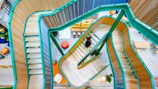 其中讓 McKelvey *自豪的改造就是立在中間的旋轉(zhuǎn)樓梯,可以看到樓下的全景,電梯被隱藏在了沒有人會注意到的角落,“逼”著人們走樓梯,去互相打招呼,人與人之間見面的次數(shù)多了,互相眼熟,也增加了社交的機率。