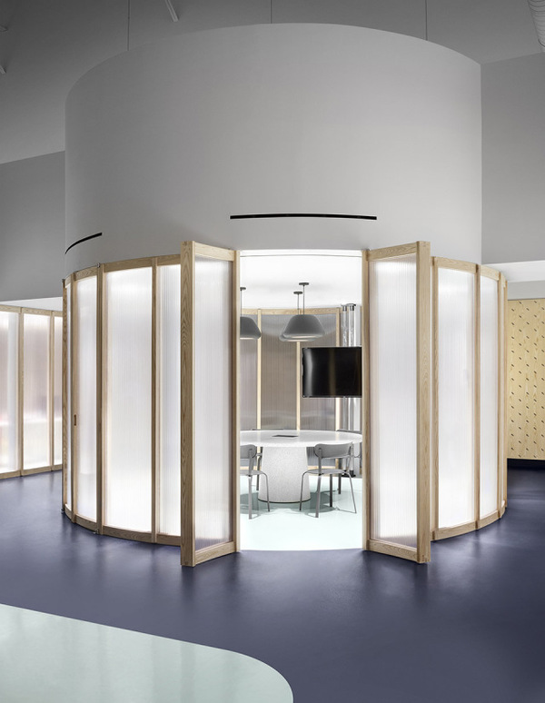 Gruppo Campari對于多倫多辦公室的設(shè)計要求十分簡單,即創(chuàng)造一個充分體現(xiàn)公司精神并且可以激發(fā)使用者靈感的空間。Campari標(biāo)志性的海報有上百年歷史,種類豐富,充滿創(chuàng)意。建筑師從海報和食材中提取顏色、圖案以及形狀,并將它們層層重疊,直到形成一個平衡的三維空間。