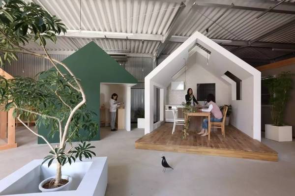 由ALTS Design Office設(shè)計(jì)的位于日本滋賀縣的Omihachiman新工作室,業(yè)主希望可以滿足不同的群體使用,同時(shí)尋找一個(gè)能夠令他們自由談話的工作室。設(shè)計(jì)者為室內(nèi)創(chuàng)建了四種“房子形狀”的位置,通過(guò)不同尺度的模塊形狀,適應(yīng)不同人群的社交空間。