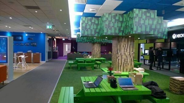 方塊積木一般的樹(shù),塊狀的藍(lán)天白云。這是什么,相信不用小編多說(shuō)了吧!這個(gè)Minecraft(我的世界)風(fēng)格的辦公室設(shè)計(jì)是微軟公司在英國(guó)的一家公司的辦公室設(shè)計(jì)。整個(gè)辦公室風(fēng)格都被設(shè)計(jì)成Minecraft風(fēng)的,置身于這樣的辦公室空間之中讓小編不僅想掄起斧頭砍下一塊材料收藏起來(lái)了呢。
