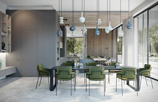 這個現(xiàn)代化的室內(nèi)是為離莫斯科不遠的私人住宅而建的。使用簡單廉價的材料和一些昂貴的家具,但取得了良好的效果。