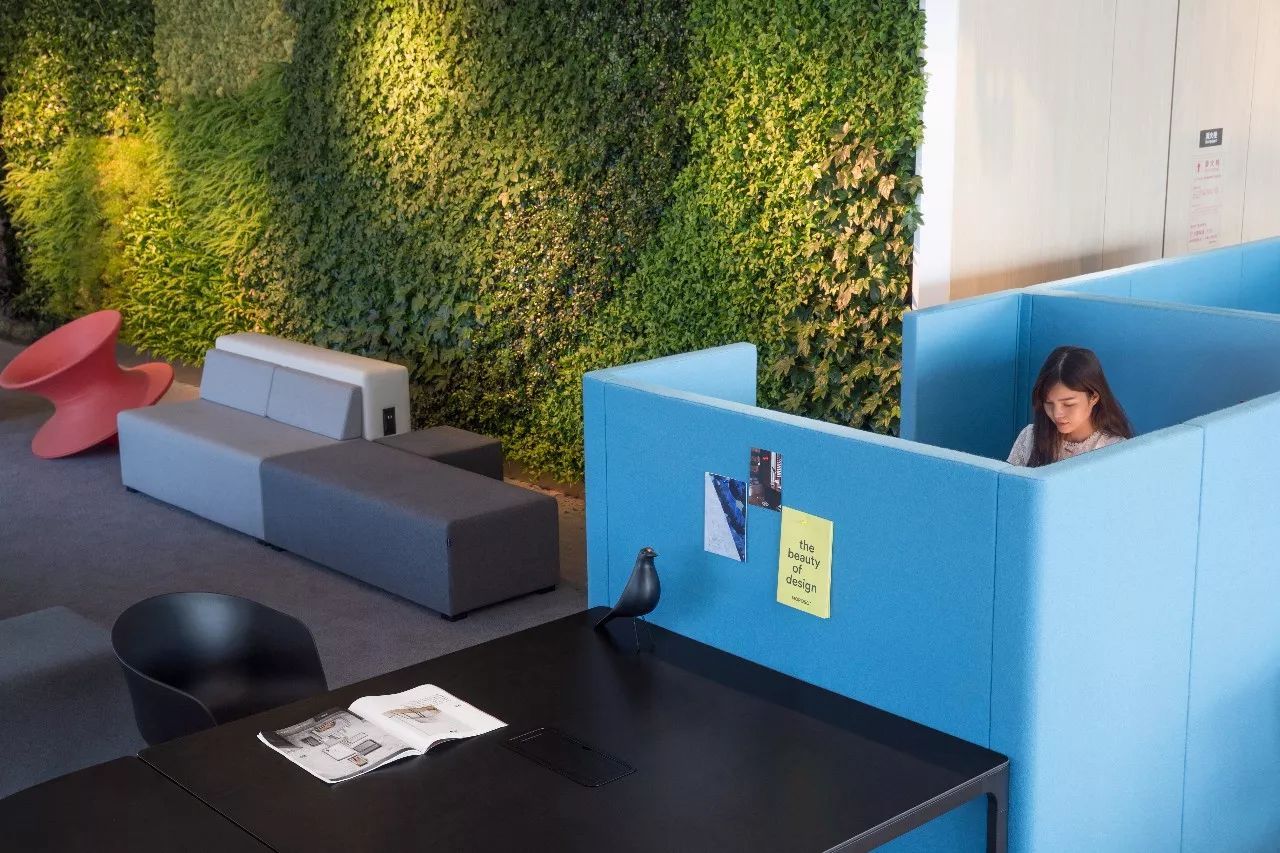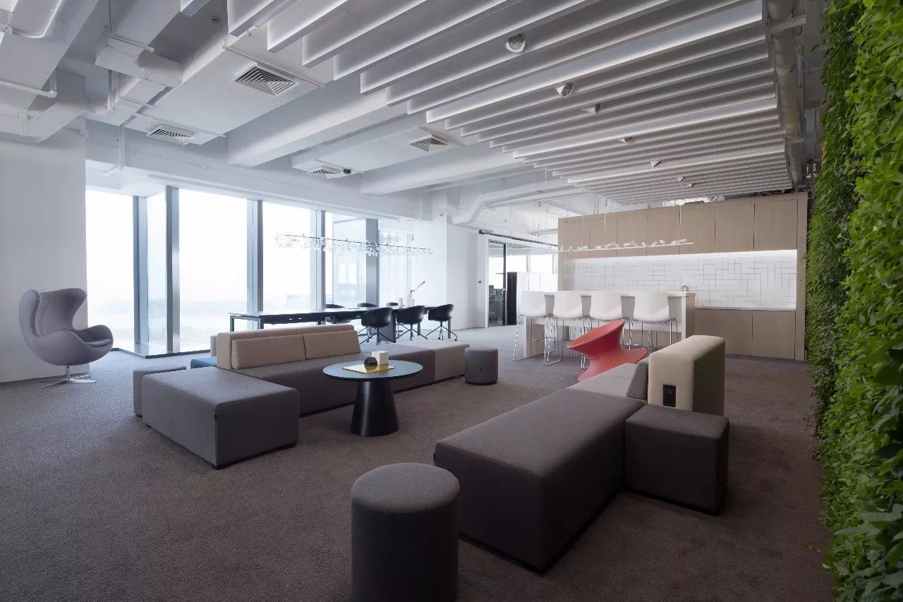 為了弱化傳統(tǒng)辦公室的緊張氛圍,公共休閑區(qū)配置了特別大的面積,包括大面積的垂直綠化墻、廚房及水吧。成為員工聚會(huì)、休息,或工作交流、頭腦風(fēng)暴的聚集地。模塊化的沙發(fā),能實(shí)現(xiàn)多變的組合方式,以及滿足員工360度全方位的無障礙溝通。