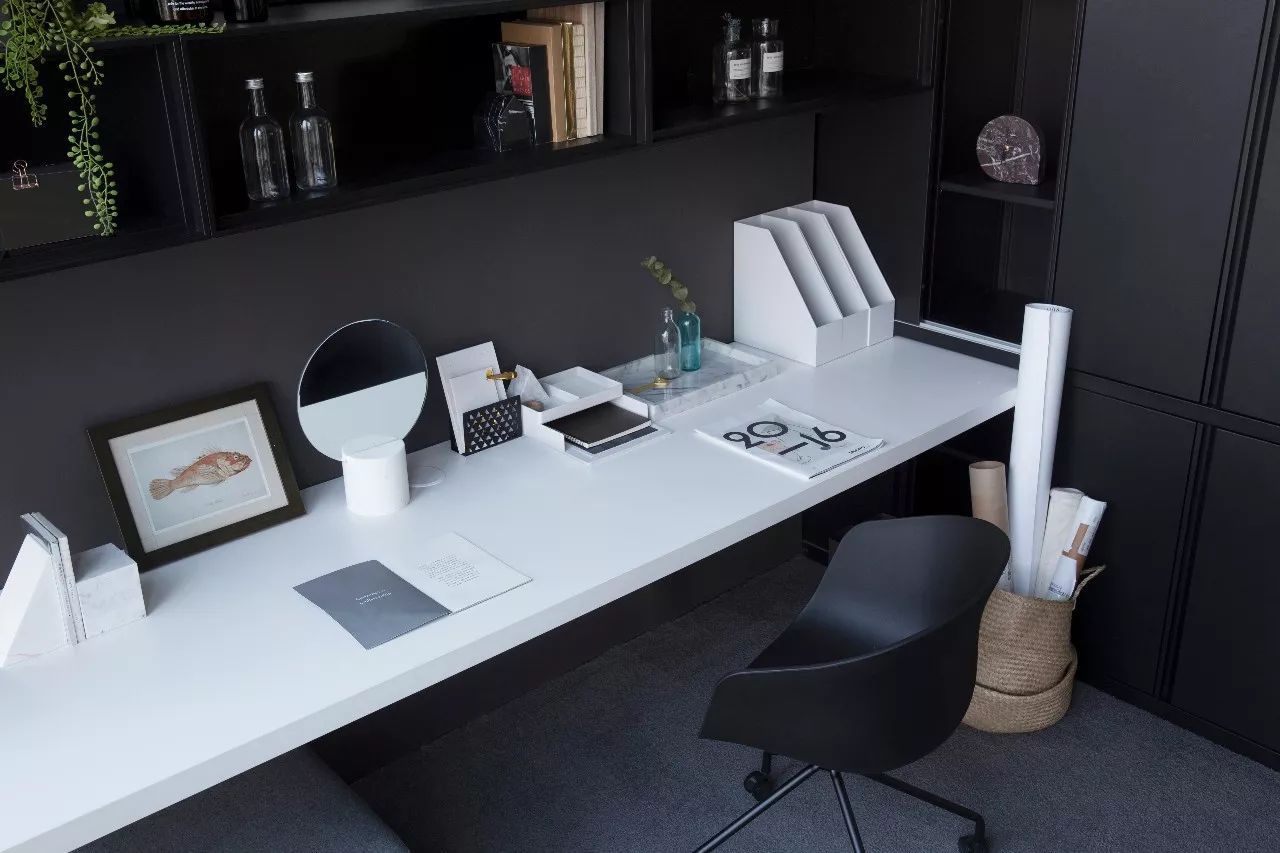 9㎡部門經(jīng)理辦公室,在功能布置上做了很大的改變和創(chuàng)新,所有的功能構(gòu)件沿著空間四周墻面布置,儲(chǔ)物、辦公、休閑、閱讀及交流等,非常巧妙的銜接,使得小面積卻擁有寬敞舒適之感。