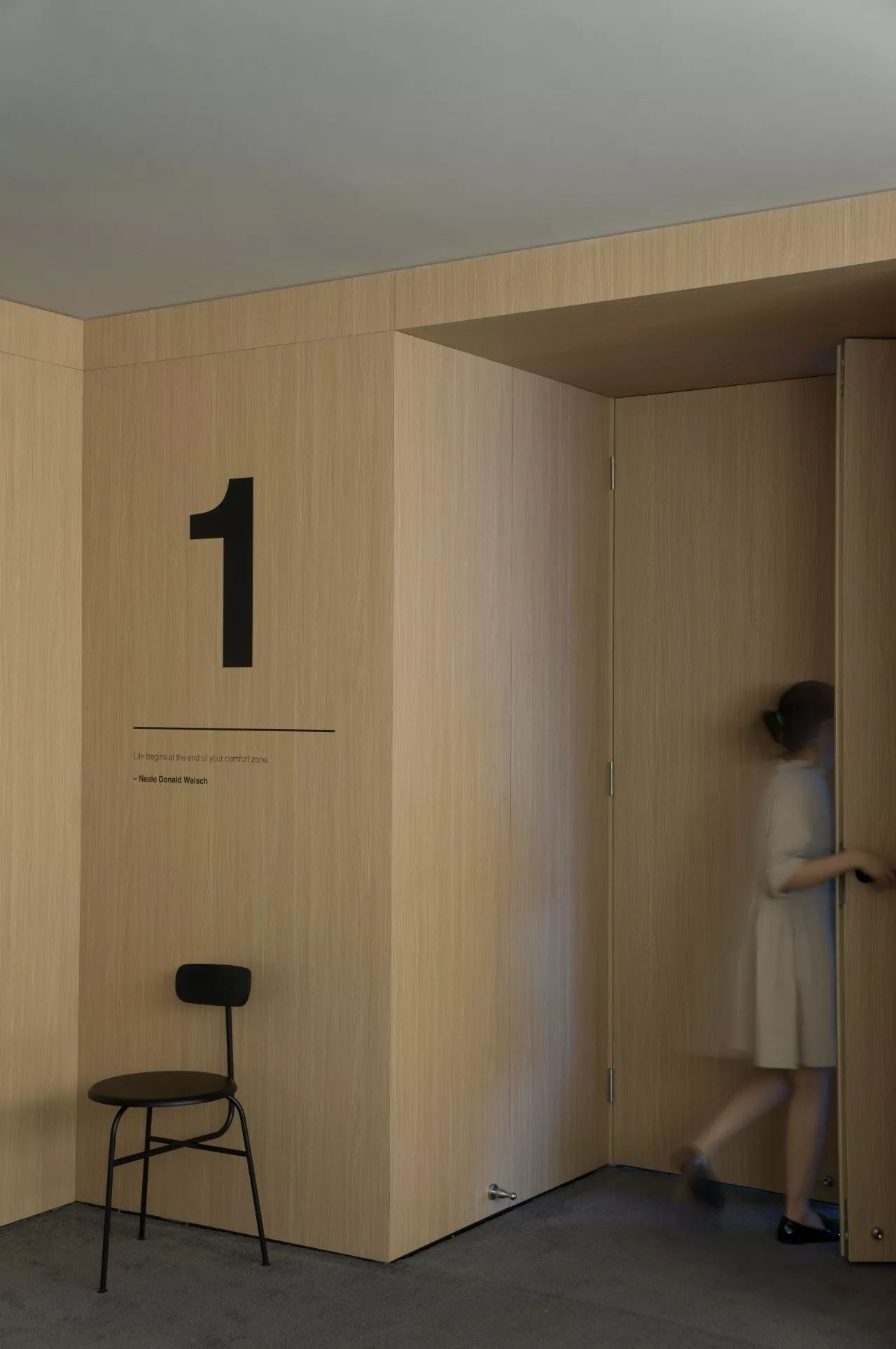 每個(gè)單獨(dú)的盒子,被賦予簡(jiǎn)單純粹的色彩和材質(zhì),比如包裹墻面和天花的彩色吸音毛氈,有效降低與其他區(qū)域的相互干擾,實(shí)現(xiàn)**的聲學(xué)效果。人在里面活動(dòng)時(shí),空間和人的關(guān)系,以及人與人的關(guān)系變得更緊密而有趣,同時(shí)獲得一種沉浸式的空間體驗(yàn),使討論或工作變的更放松和專注。