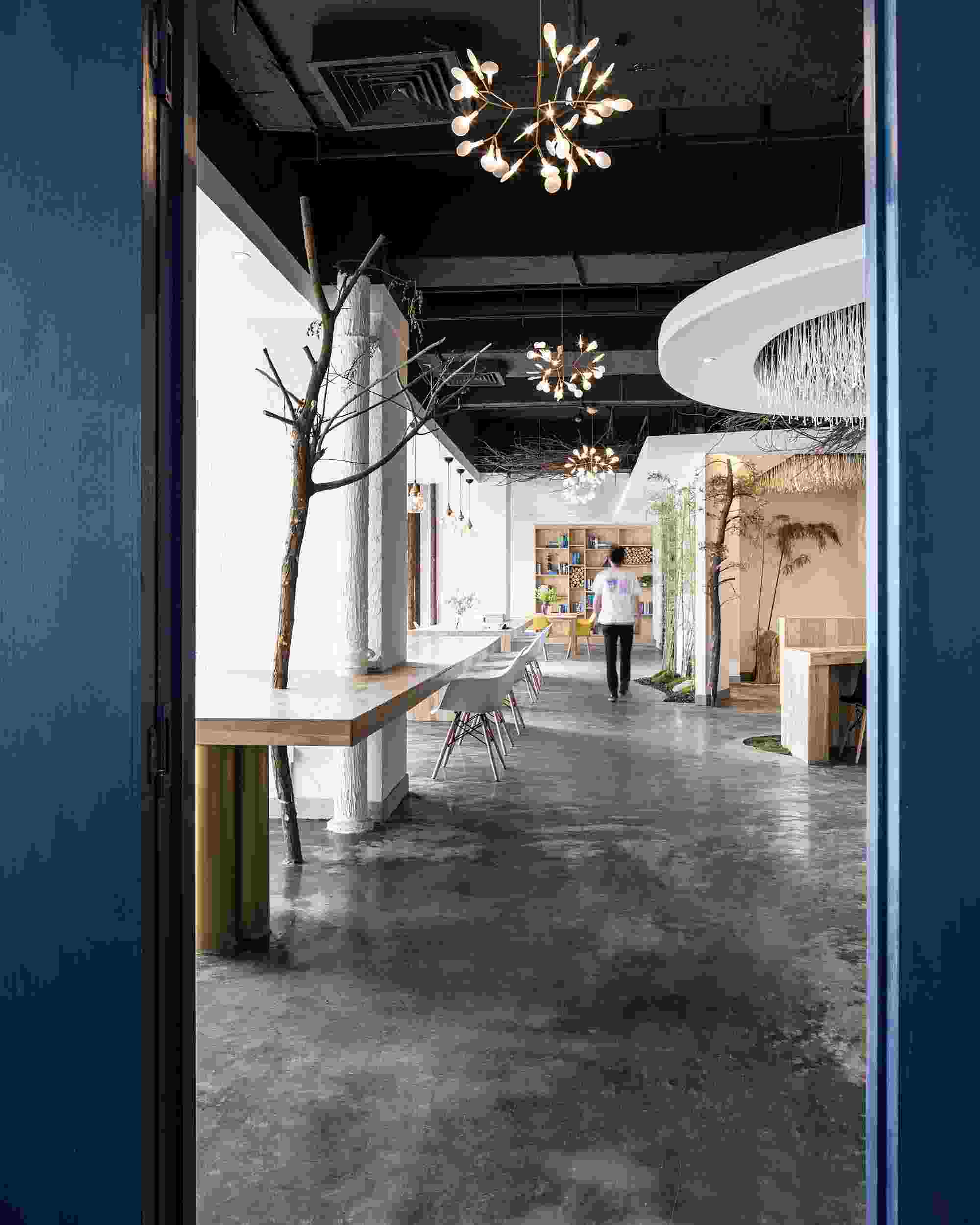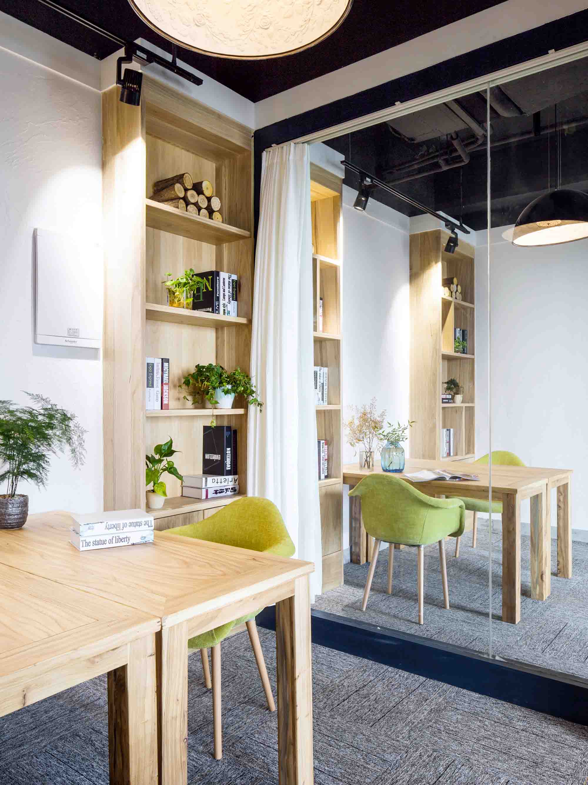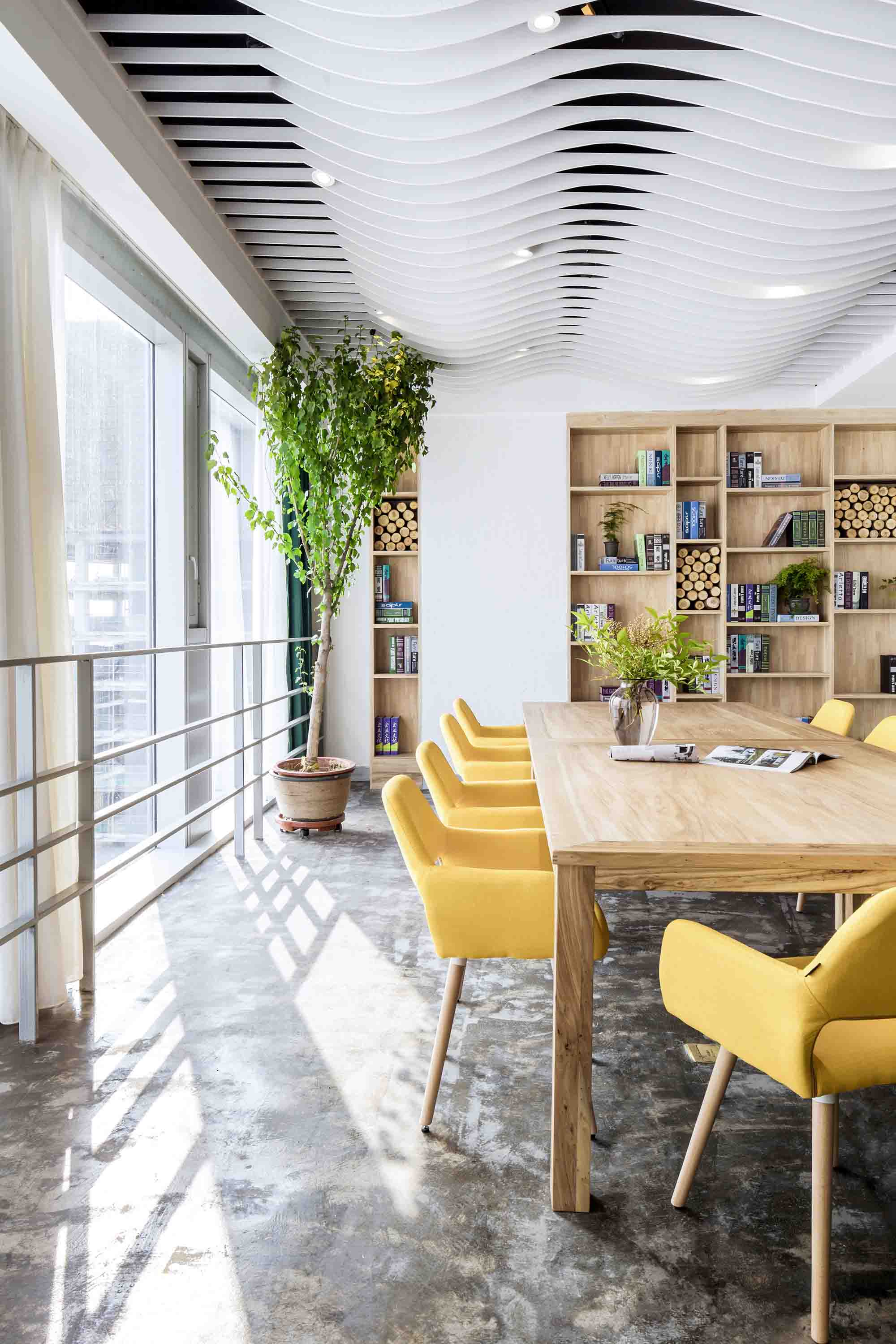在功能分區(qū)上,設(shè)計(jì)師將整個(gè)空間分成了三份。獨(dú)立的總經(jīng)理辦公室,連通著的工作區(qū)與會(huì)議區(qū),開(kāi)放式的辦公空間可以**限度的利用自然光線,與外界環(huán)境形成流暢的互動(dòng)和交流,*終達(dá)成空間整體的默契和統(tǒng)一。整個(gè)空間一改辦公室嚴(yán)肅,乏味的形象,做成了一個(gè)自然流露,**人文氣息的辦公空間。