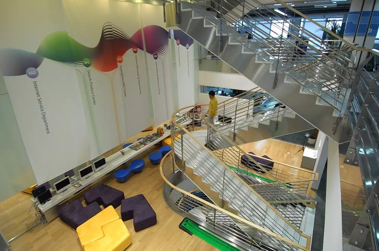此前的總部騰訊大廈,其室內(nèi)設(shè)計以年輕為主,配色多樣。