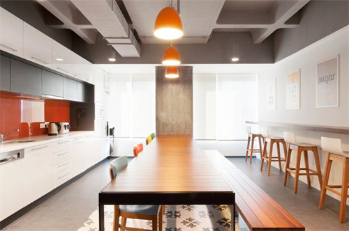 服飾公司簡約風(fēng)格辦公室裝修:辦公室裝修將吊燈和臺燈組合滿足燈光需求,側(cè)墻的櫥柜解決小飾品、資料排放問題,整體空間設(shè)計營造了一個高效率的辦公環(huán)境。洽談區(qū)沒有采用過于生硬的設(shè)計手法,而是采用充滿溫暖氣息的布藝沙發(fā)、照片墻等元素,能夠在輕松的環(huán)境中洽談業(yè)務(wù),與品牌定位**契合。