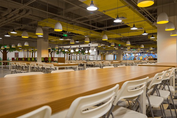 這是食堂,好吧,跟辦公區(qū)一樣密集,還是給人一種很擁擠的感覺,說實話,設計感什么的暫時還談不上。