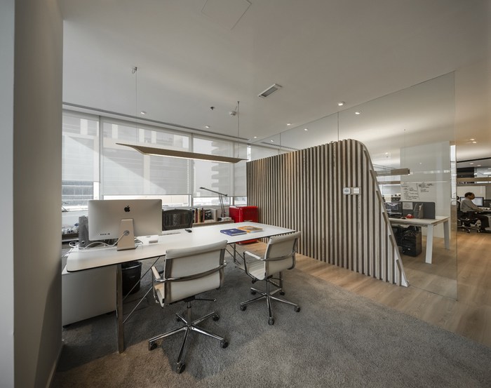 此外,自定義的燈掛在整個(gè)辦公室,可以根據(jù)*終用戶(hù)個(gè)性化。設(shè)計(jì)師整合背后隱藏的門(mén)廚房。由于沒(méi)有窗戶(hù),它的內(nèi)部被設(shè)計(jì)成一個(gè)小咖啡店,考慮到一個(gè)溫暖的氣氛(在墻上的瓷磚,鵝卵石地板磚,更經(jīng)典的廚房單元,咖啡桌)。總體而言,這個(gè)項(xiàng)目已經(jīng)取得了一個(gè)正確的平衡空間,材料和功能,考慮到的挑戰(zhàn),其結(jié)果正是客戶(hù)所期待的:一個(gè)友好的工作環(huán)境與觸摸的“哇效果”的游客。