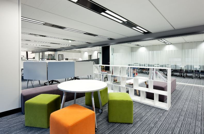 ? ? 德韋爾是一個(gè)工業(yè)材料集團(tuán)公司,化工和時(shí)尚。工作人員可以使用粉末室進(jìn)行頭腦風(fēng)暴和集中工作。辦公空間有不同的主題,根據(jù)他們所工作的品牌。在色彩和高對(duì)比度較強(qiáng)的線(xiàn)性設(shè)計(jì),前衛(wèi)的品牌形象是顯而易見(jiàn)的。